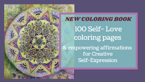 Download this beautiful coloring book with 100 original designs to print, color, tangle or doodle. Each page also includes an empowering affirmation for improving your relationship with yourself.
