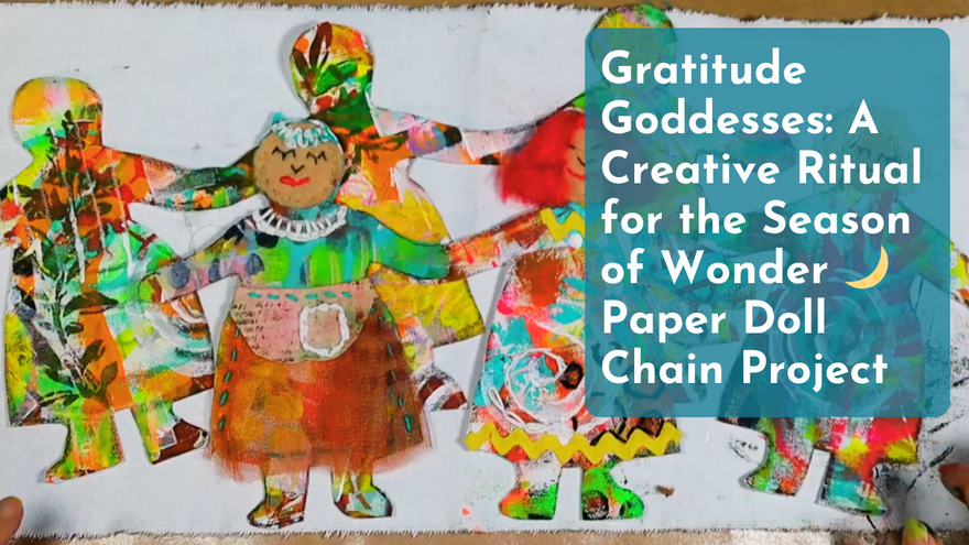 Each day in November, you’ll create a simple paper doll—a Gratitude Goddess—to represent a reflection, a blessing, or an inner truth. One doll a day. One small act of devotion. Together, they form a chain, a garland, a shimmering altar of your season of wonder.