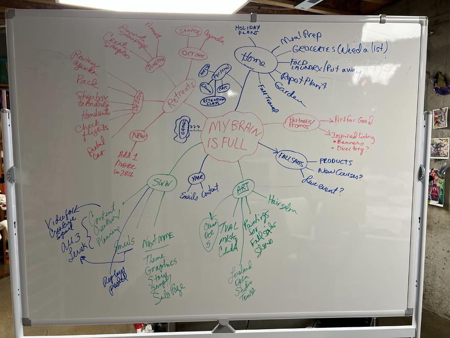 It’s part intuitive art practice, part therapeutic journaling, and part project planning tool. Instead of forcing my thoughts into bullet points or categories, I let them flow onto paper—in shapes, colors, doodles, words, and lines that don't need to make sense to anyone but me.