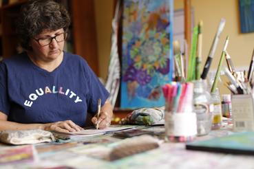 Julia describes the Sisterhood as a commitment to a time to make art together for self-exploration. She loves the creative processes Minette shares.