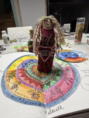 I am steeped in immense gratitude for the depth and richness of the experience. From the moment we began this 4 and 1/2 day retreat, we traveled in a liminal space of radical acceptance, profound insight, and heartfelt generosity. We were surrounded by the saturated colors of the sacred space created to contain and support our creative unfolding. Delicious food, the company of wise women, the natural environment we spent time in, the abundance of diverse materials and gentle, loving guidance were food for my Soul. The theme delighted and inspired me with well orchestrated and thoughtful stepping stones along the path end with the sacred sharing of our creations on our last morning together. Minette [is a] masterful Magician who took me on an enchanted journey that I will forever cherish.