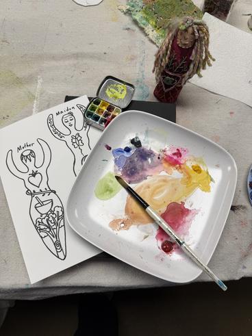 During our time together, we will be drawing, painting, writing and creating a suite of divine feminine archteypal characters. This is a retreat where alchemy, soul, and story converge, and everyday materials become conduits for transformation.